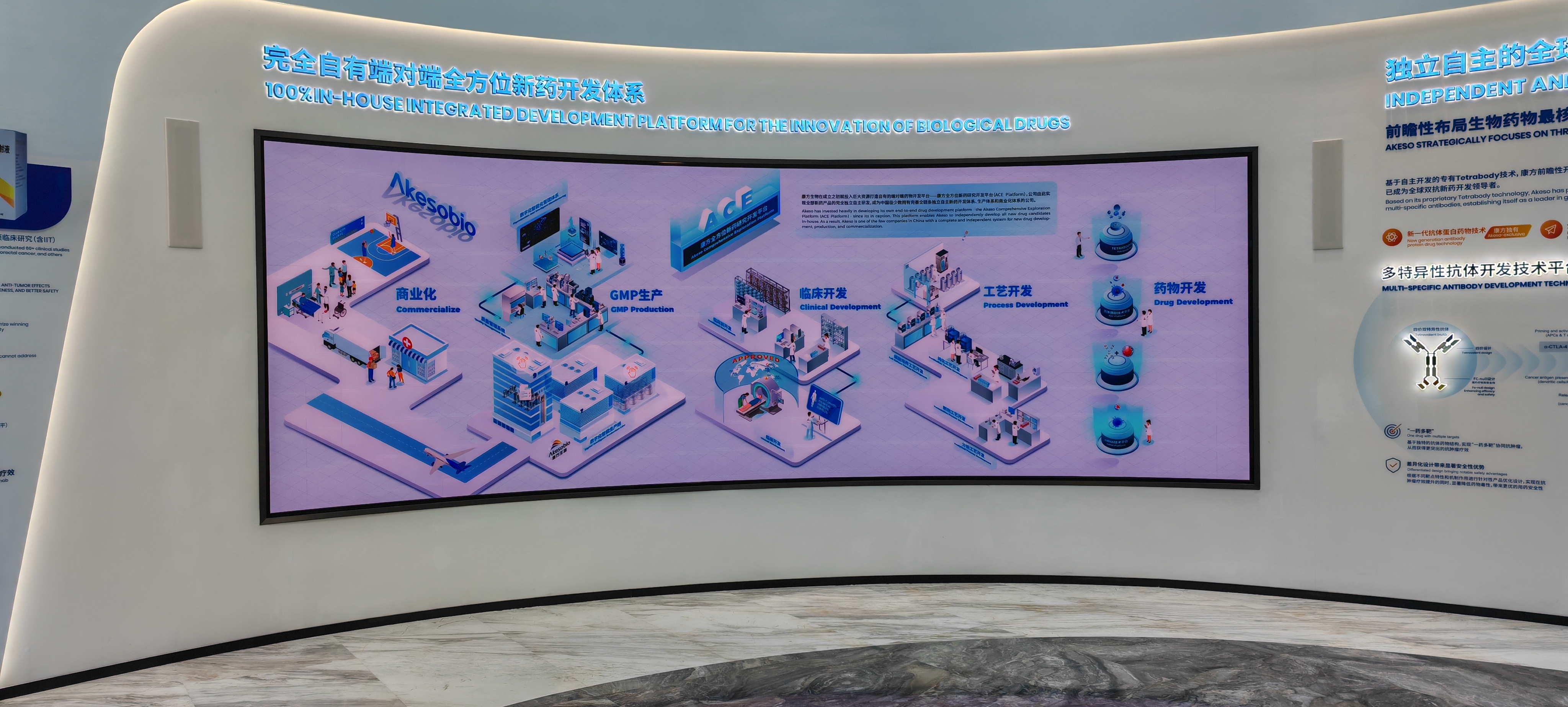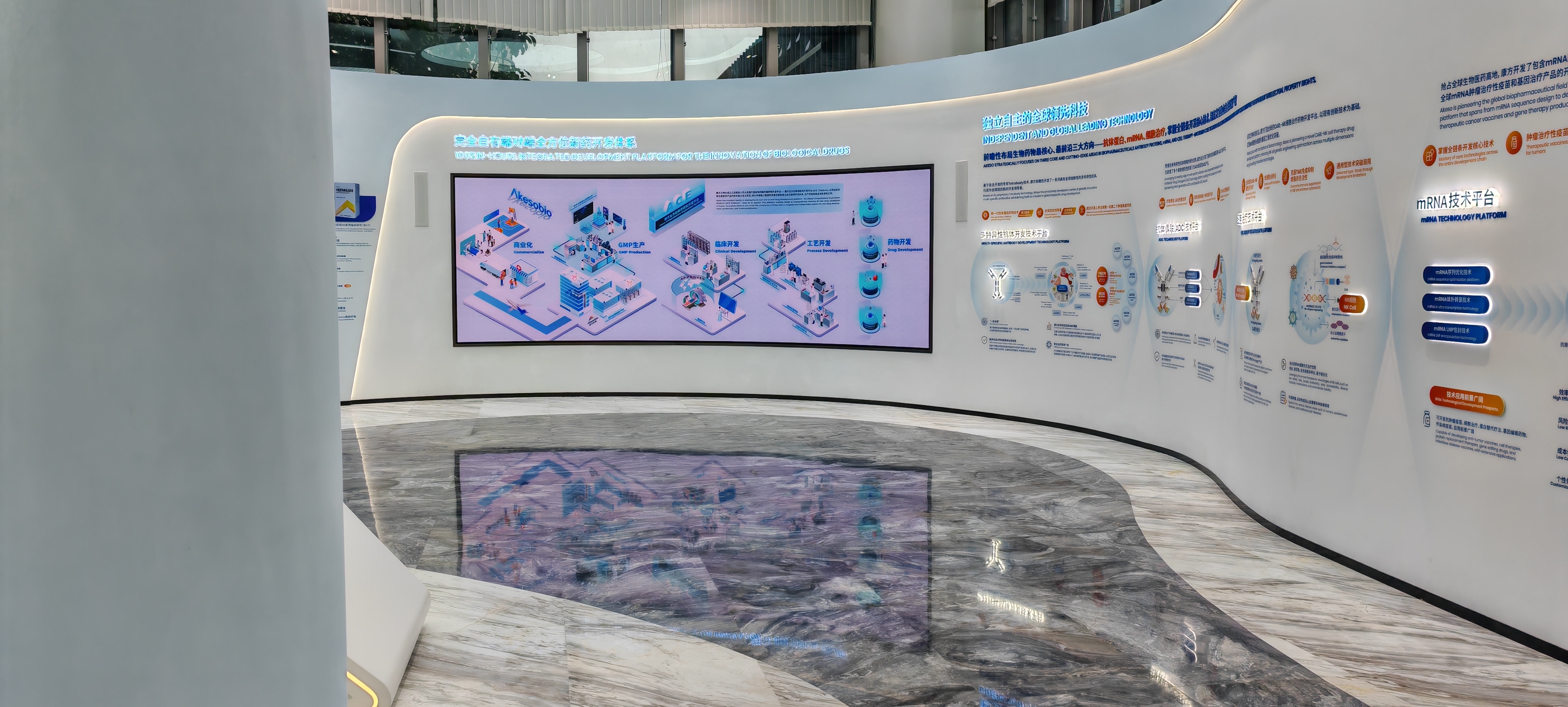作为生物医药企业,需打造集品牌形象展示、企业历程介绍、研发成果呈现、内部会议培训于一体的专业数字化空间,对显示系统的稳定性、画质精度及 7×24 小时可靠运行有明确要求。