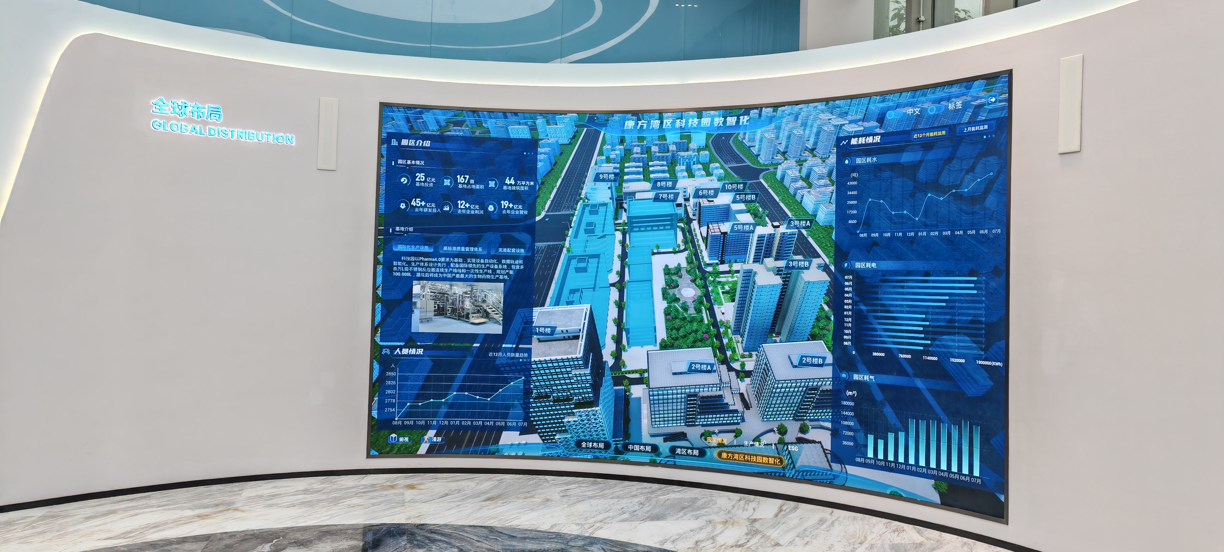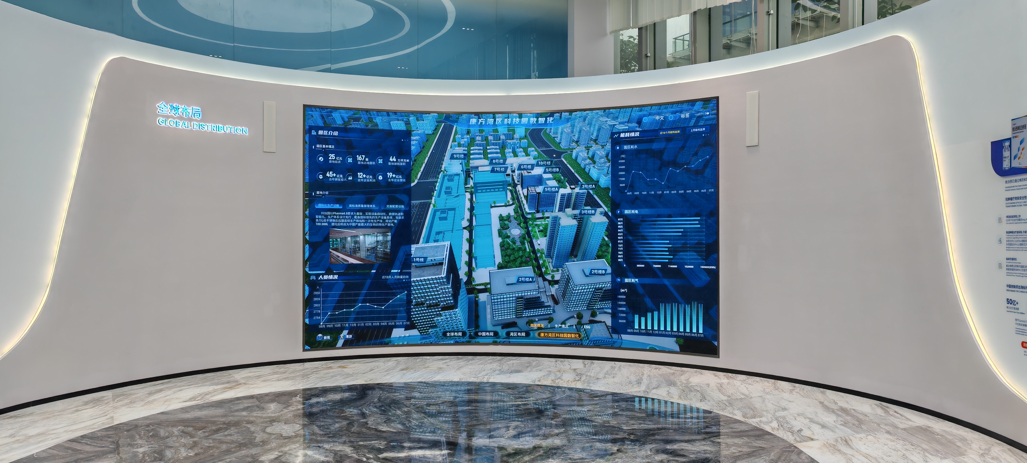 采用 P1.25/P1.53 小间距高清 LED,画面细腻、色彩还原精准,可清晰呈现企业研发成果、产品介绍与品牌历程,打造专业的企业形象展示窗口;高稳定性的 LED 系统可满足生物医药企业对设备长期可靠运行的要求,适配日常会议、培训、参观接待等多场景使用;为企业提供一体化数字化显示解决方案,助力品牌形象提升与内部沟通效率优化,打造现代化生物医药企业的科技感空间。