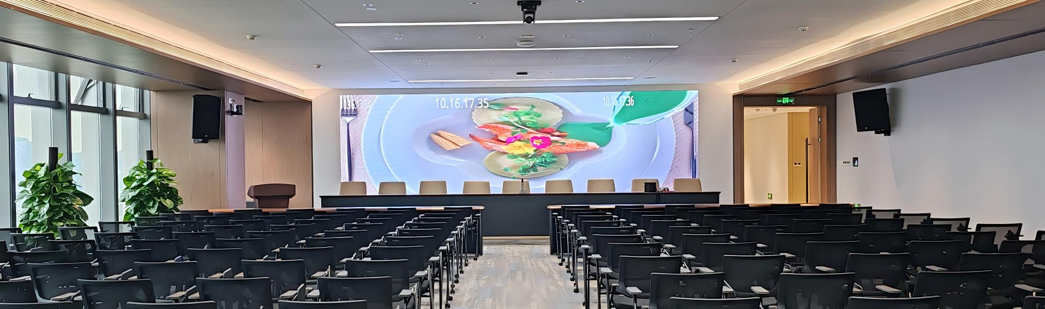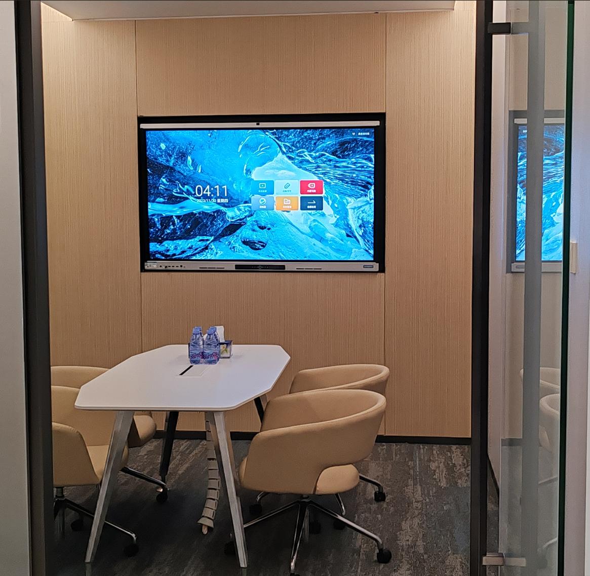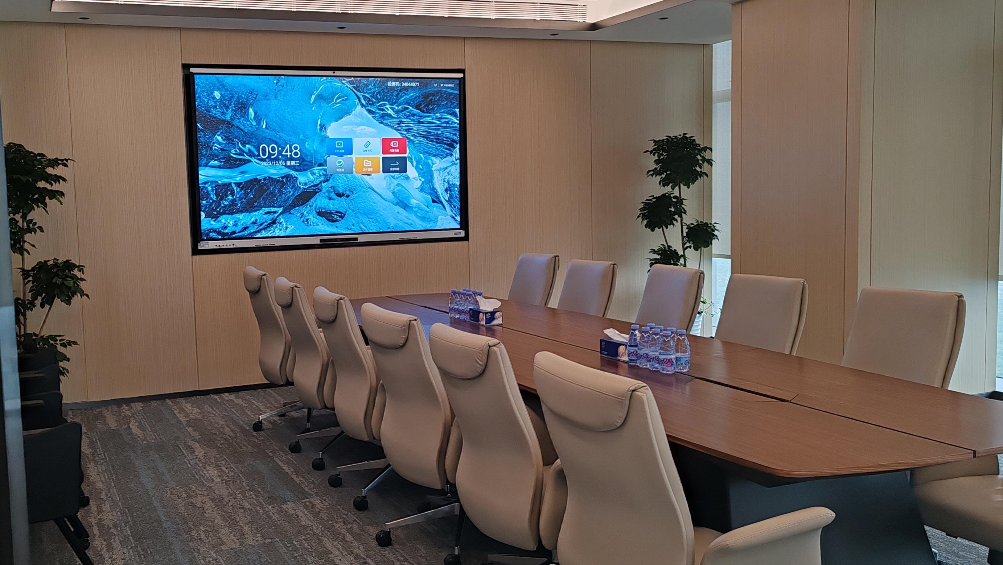 星炜提供了创维智能交互平板4台CV2H650G6、2台CV2H750G6、4台CV2H980G6分别用在洽谈室、小型会议室、中型会议室。创维LED-1.86则落地在大型培训室,配合电视机和音频系统集成一体。